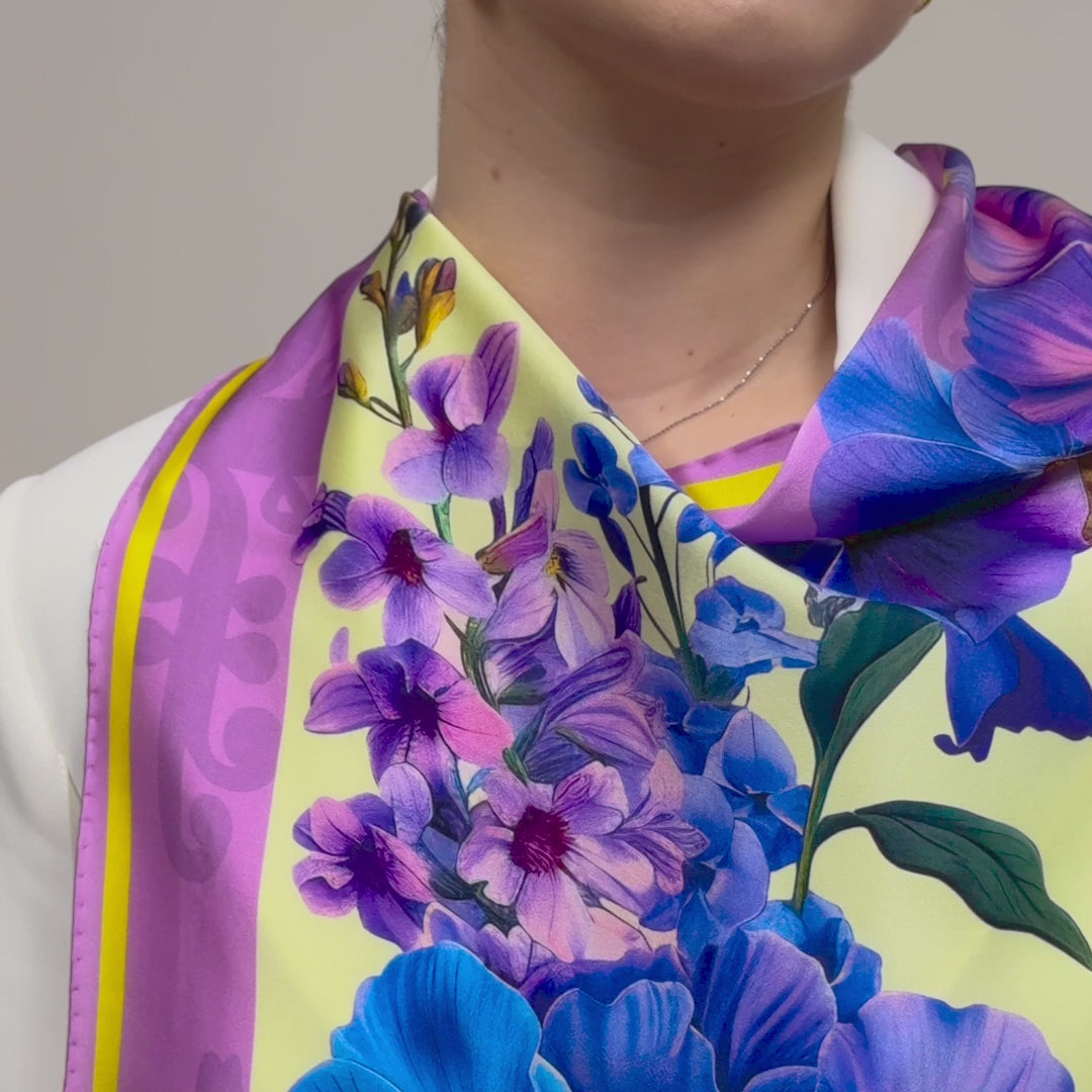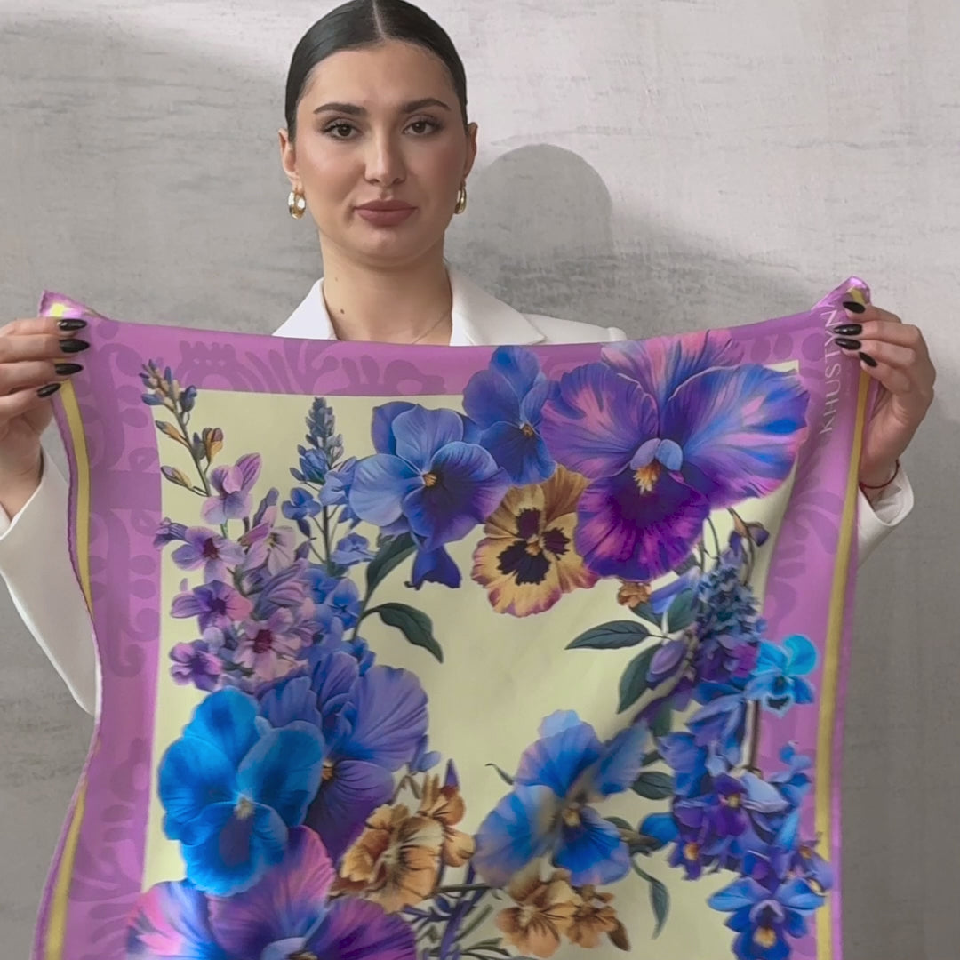 - Кожна хустина дбайливо пакується у м’який блакитний папір, колекційнійну коробку та поставляється з преміум пакуванням, вітальною листівкою та сертифікатом від Flowerpot (fpot.com.ua) з ексклюзивною знижкою 20% на весняний квітковий букет.